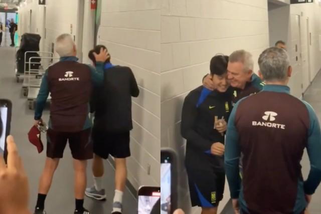见到昔日弟子,墨西哥主帅阿吉雷将李刚仁搂入怀中